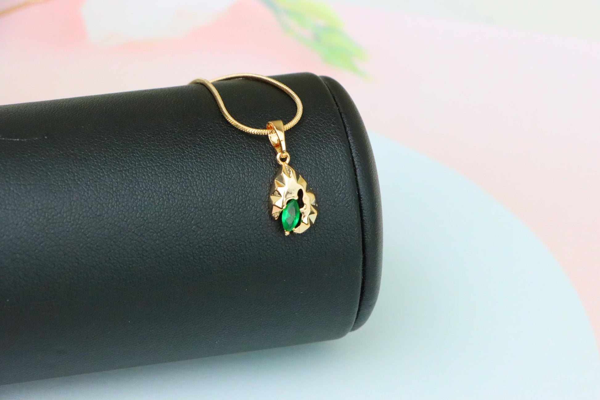 Graceful green stone pendant with leaf-inspired design and glossy finish.