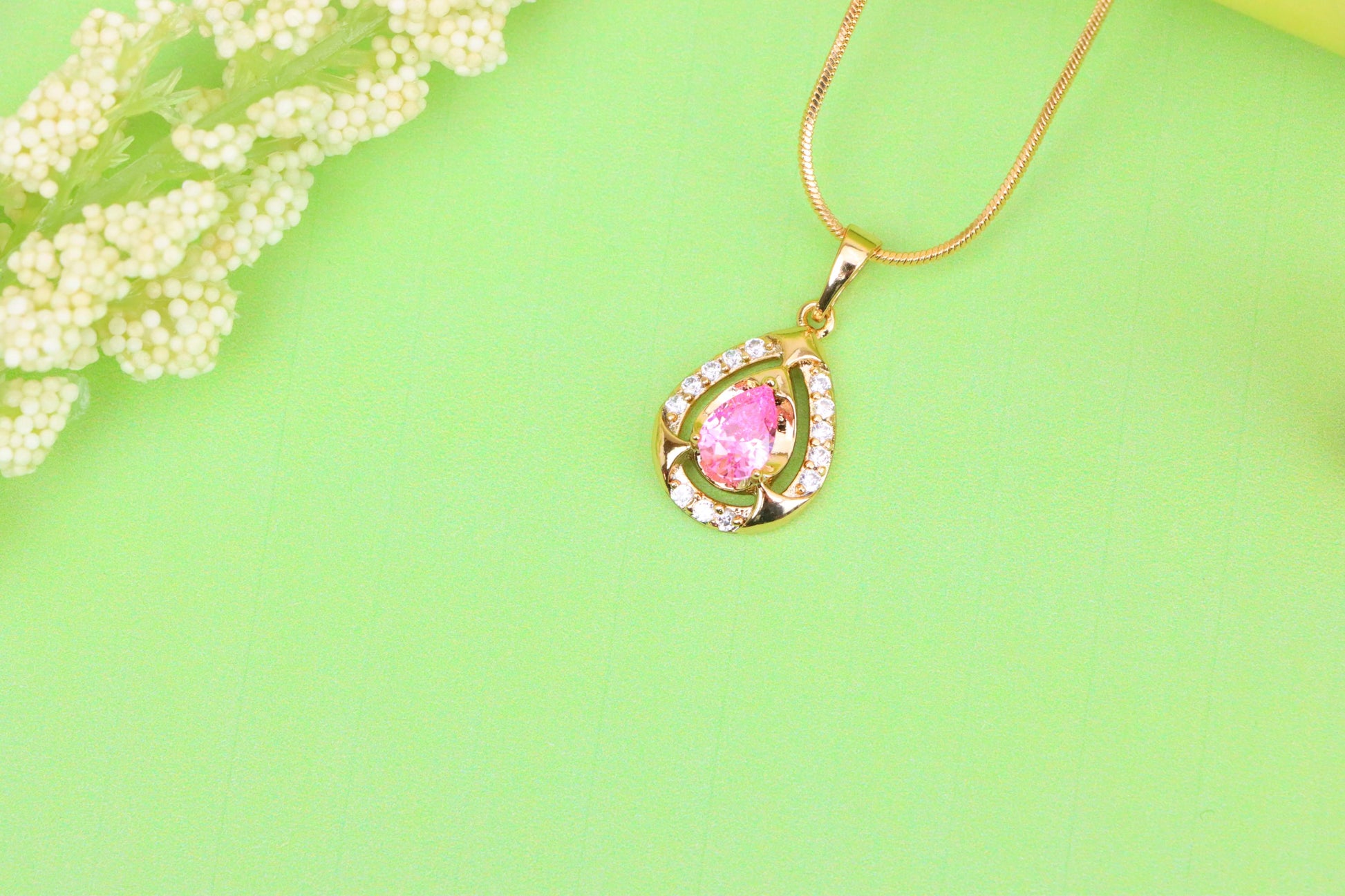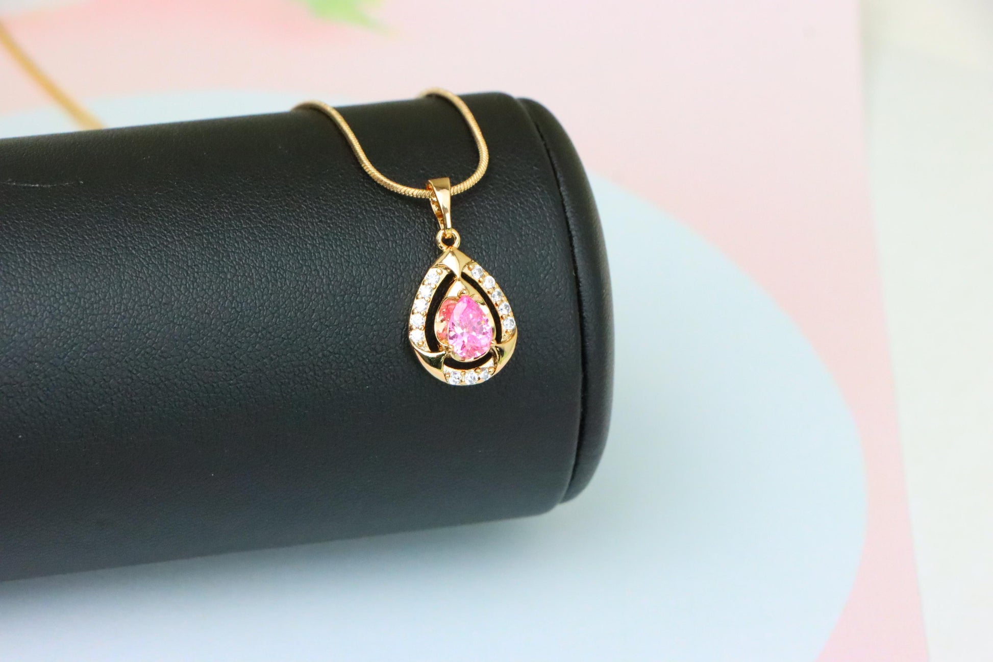 Elegant pink teardrop pendant with crystal accents for a graceful touch.