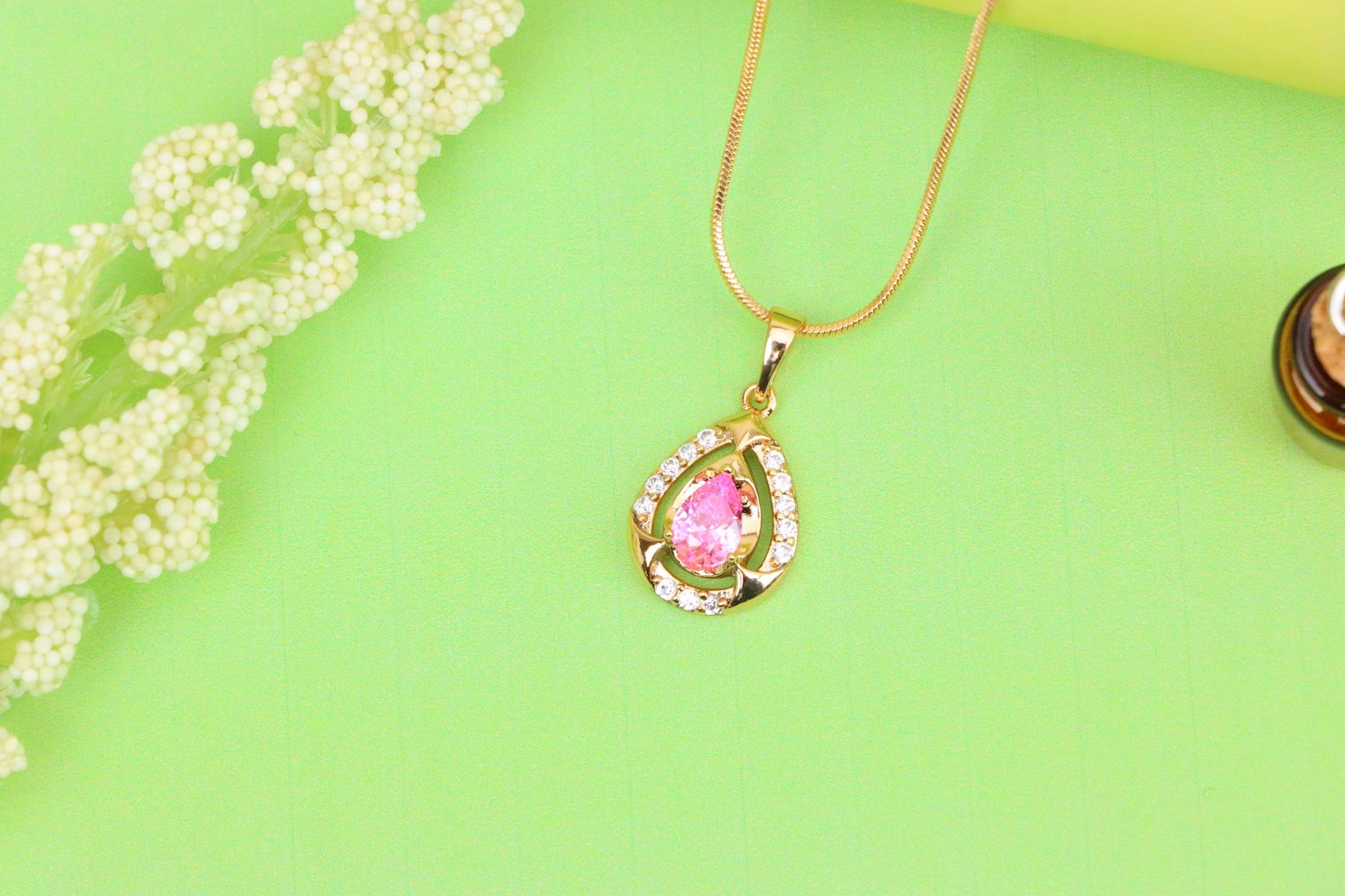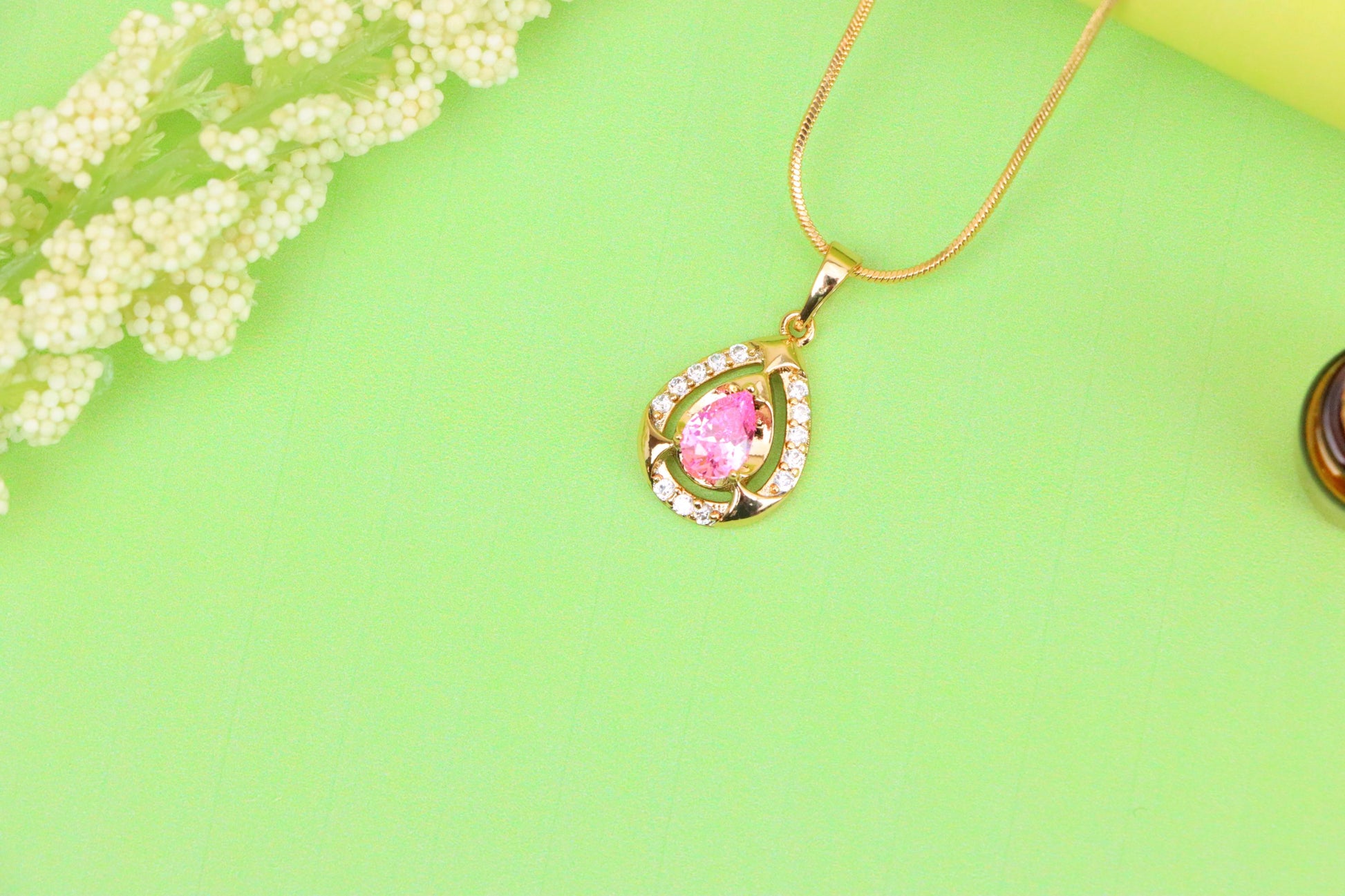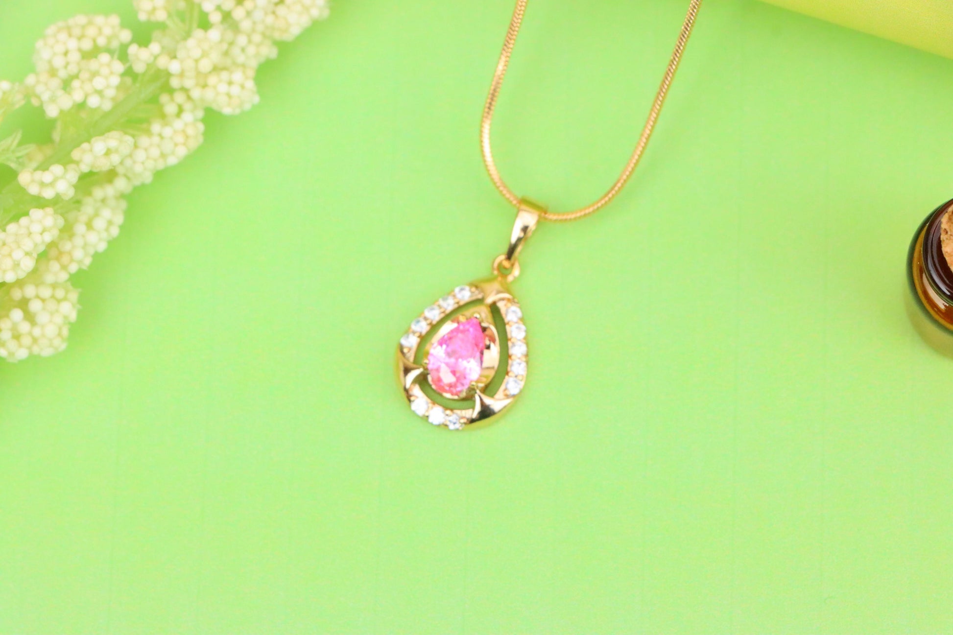 Teardrop Pink Stone Pendant with Sparkling Accents in Gold Finish, XPPT1799 (2153-2)