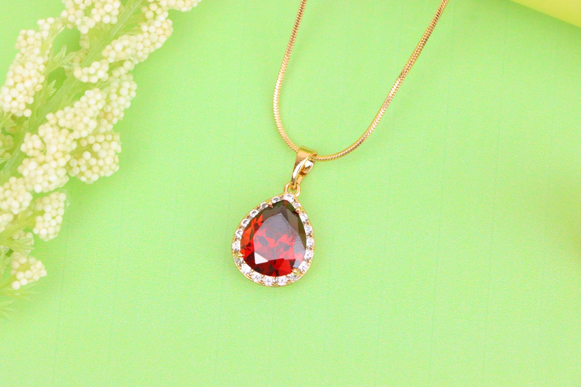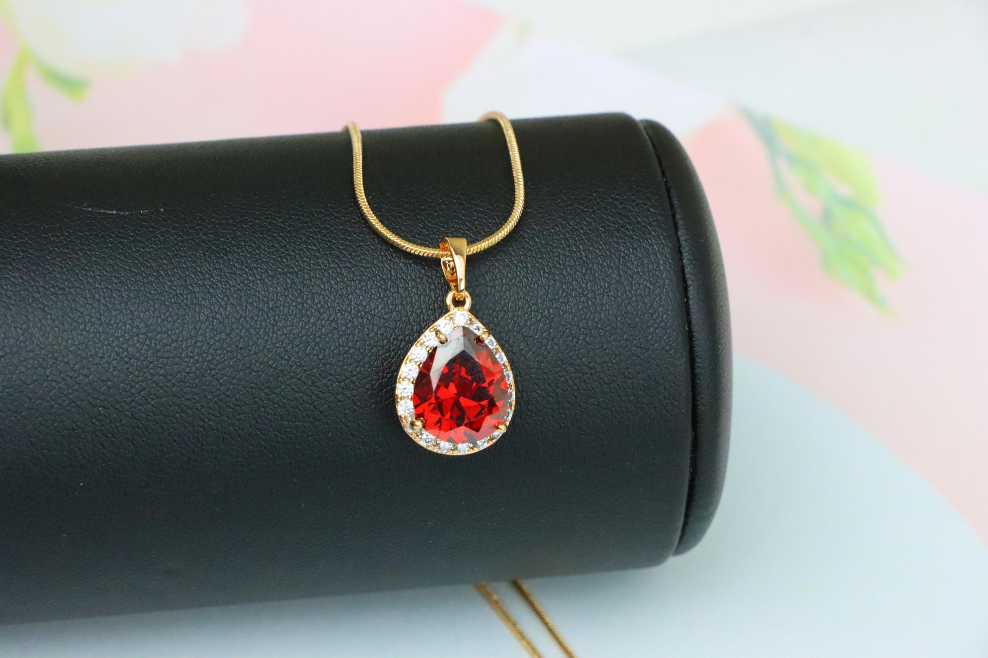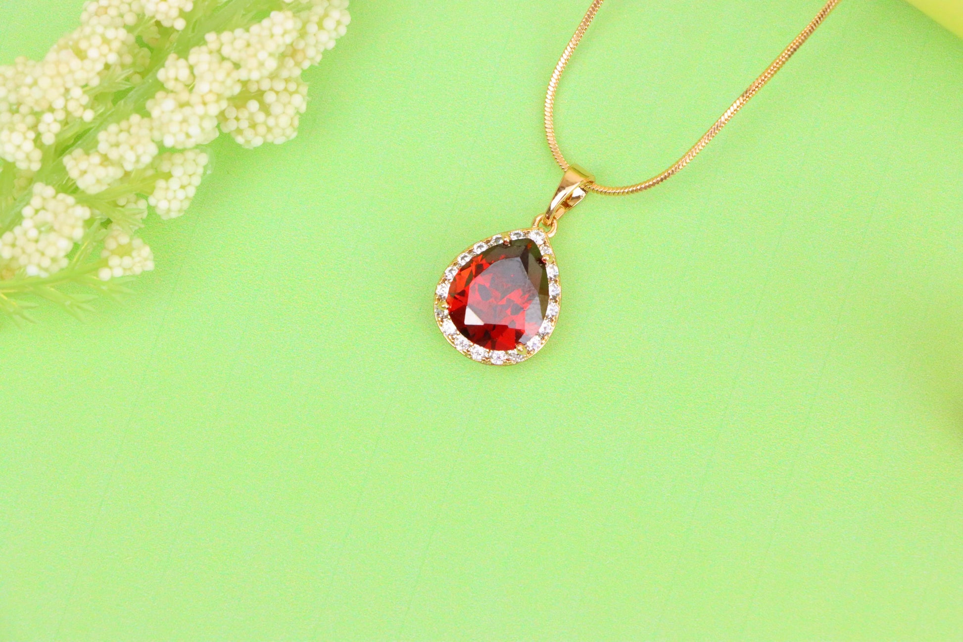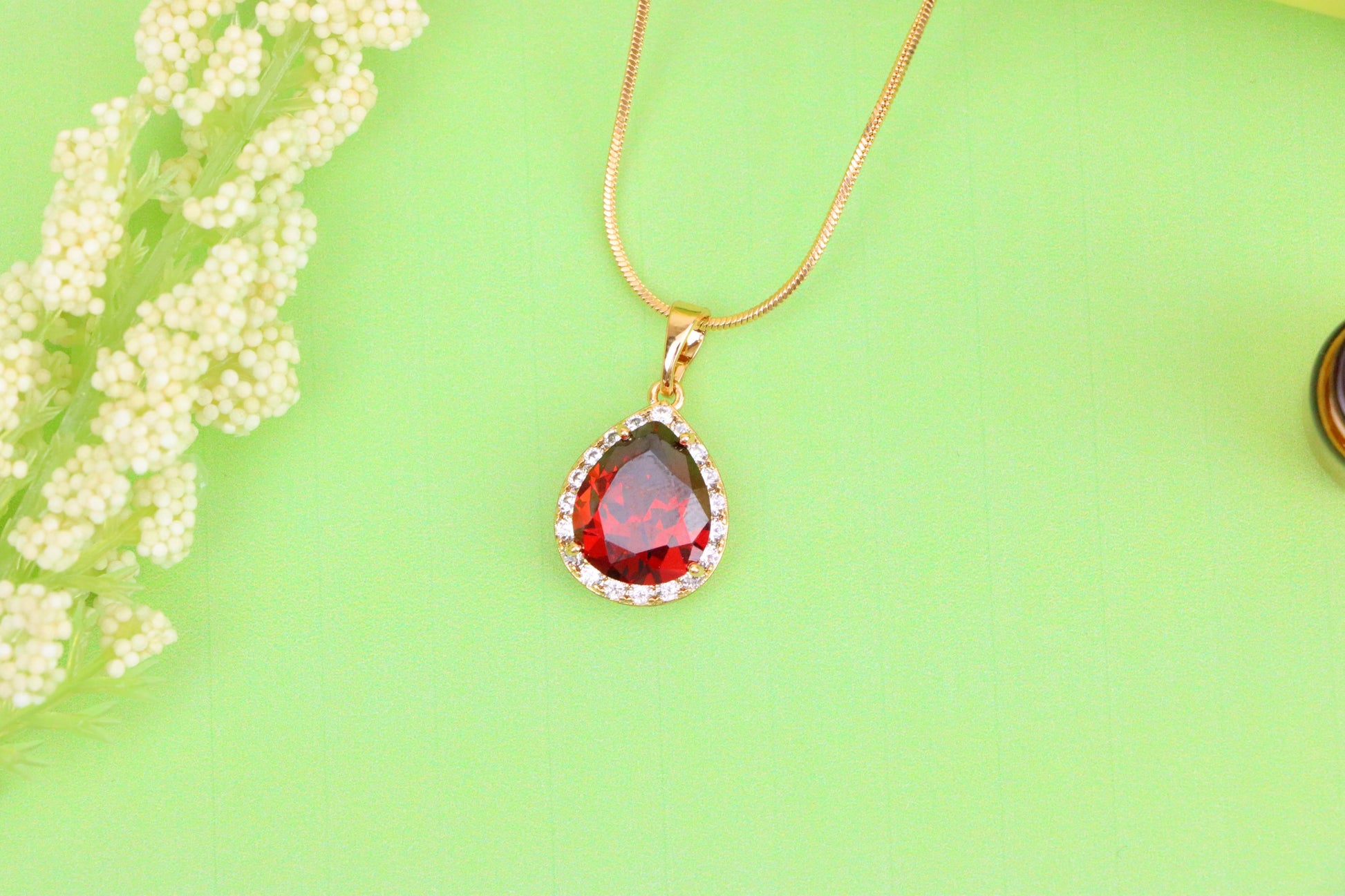 Teardrop Red Pendant with Crystal Border in Elegant Rose Gold Setting, XPPT1618