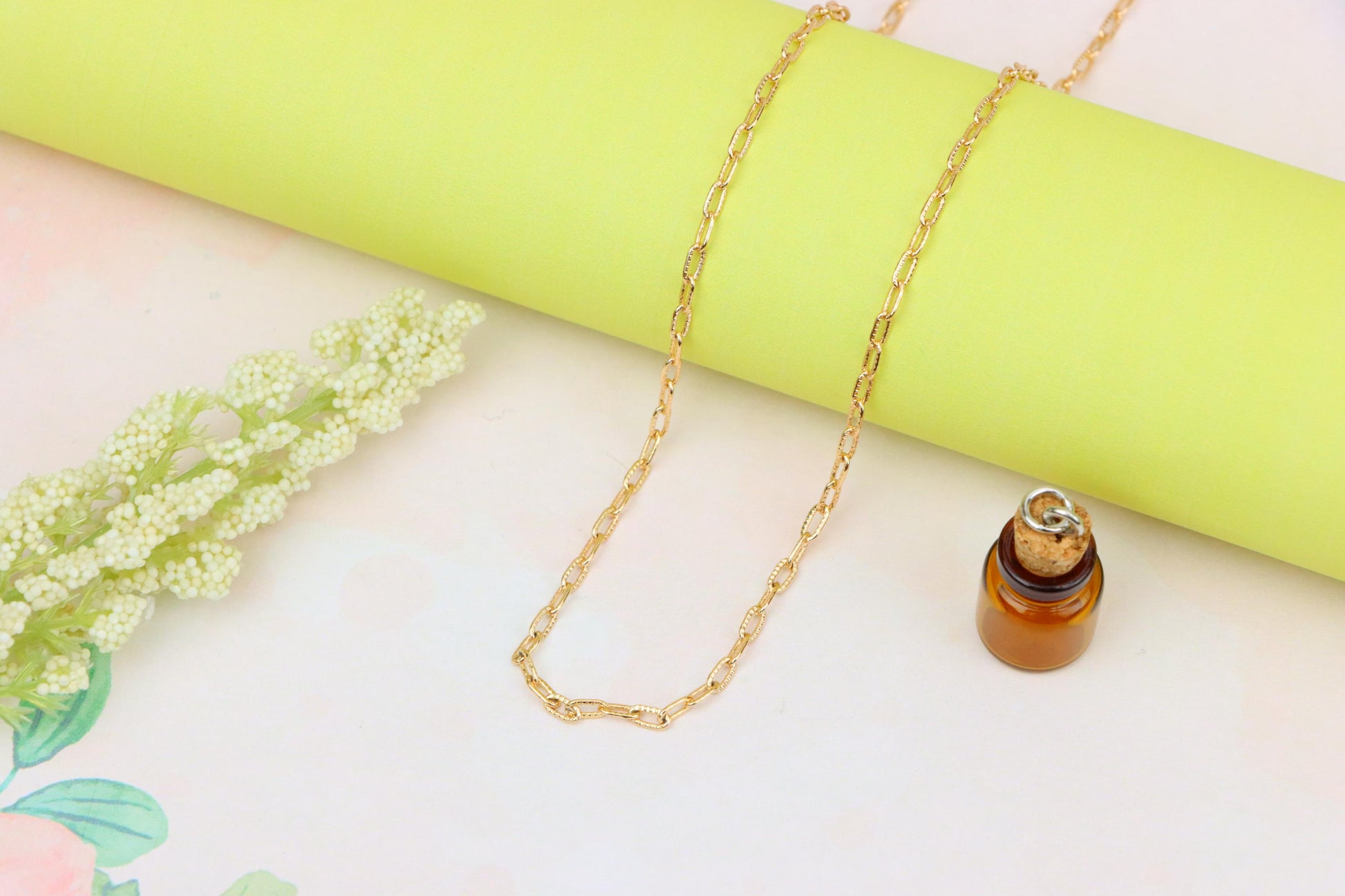 Textured Link Chain Rose Gold Necklace with Lobster Clasp, XPNL1901