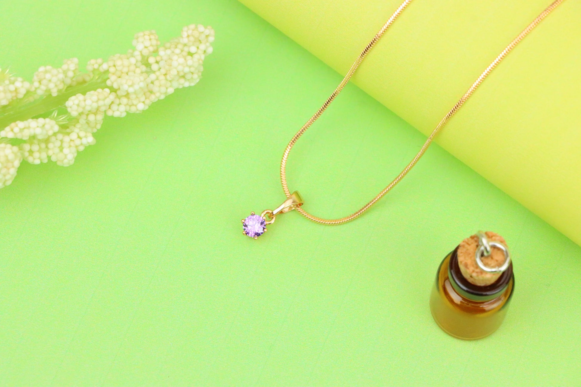 Simple yet elegant, this purple pendant adds a delicate charm to your look.