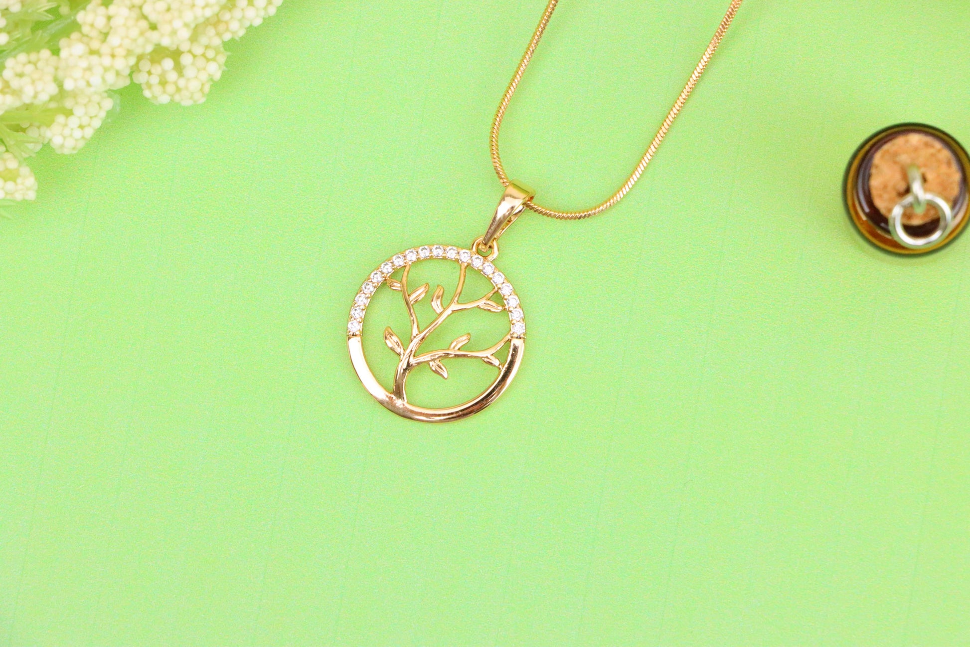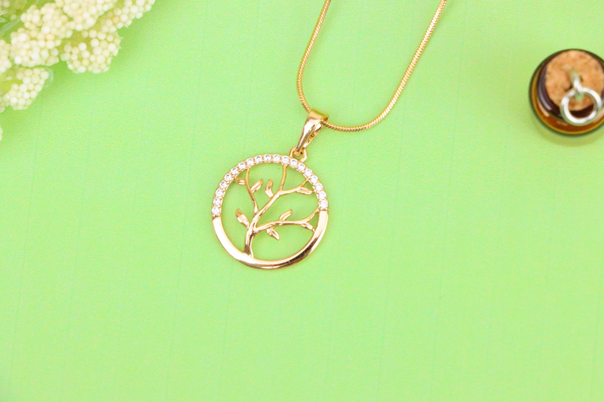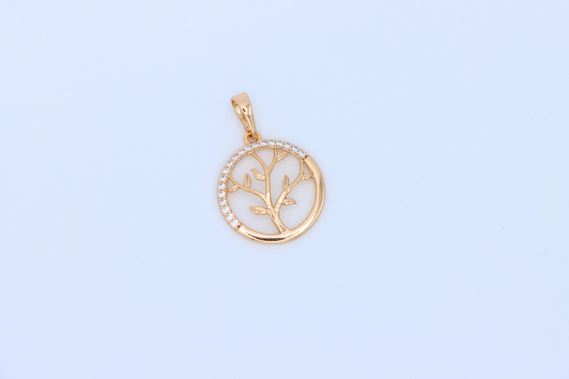 Stylish circular pendant featuring a tree of life motif and sparkling cubic zirconia accents.
