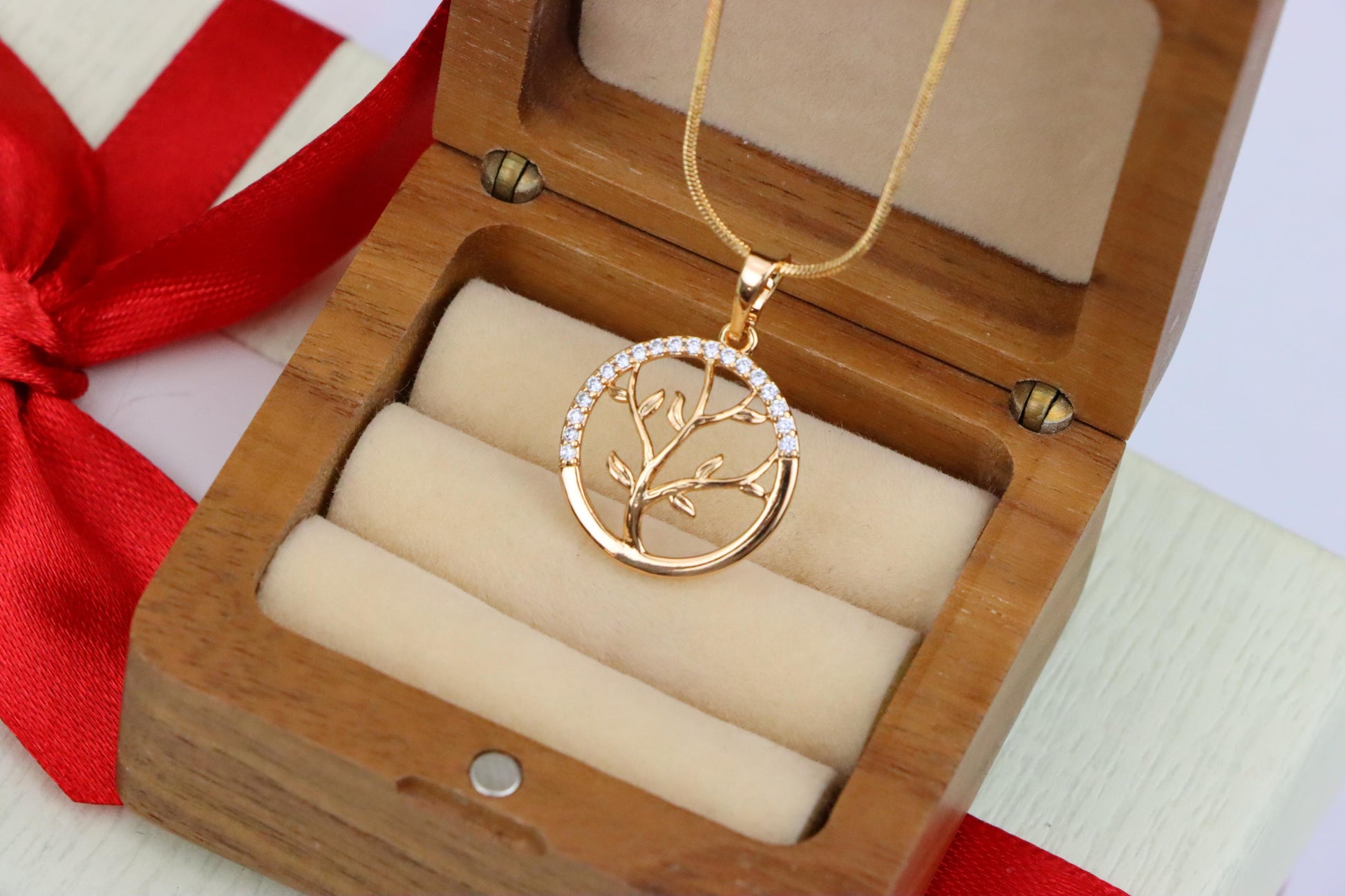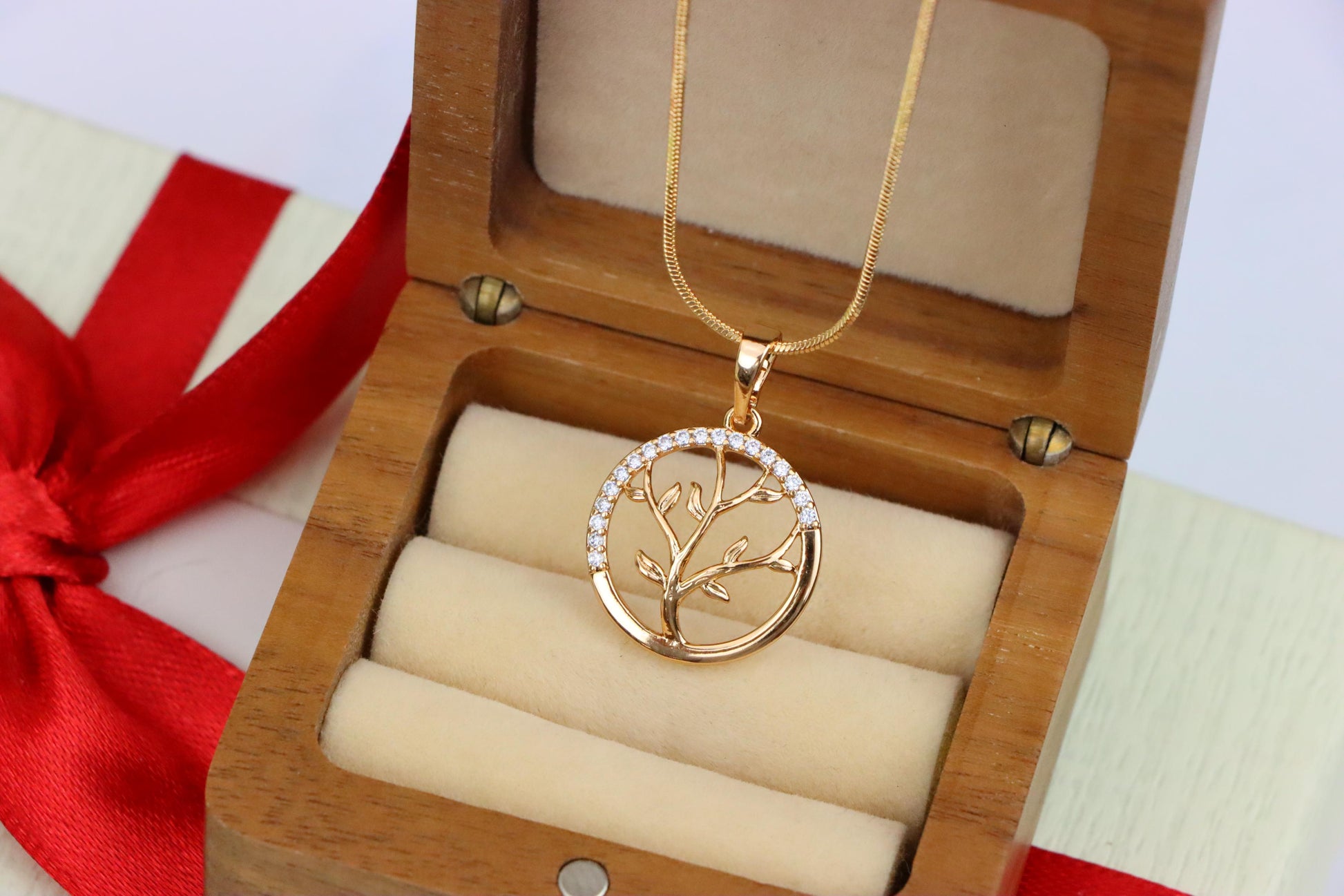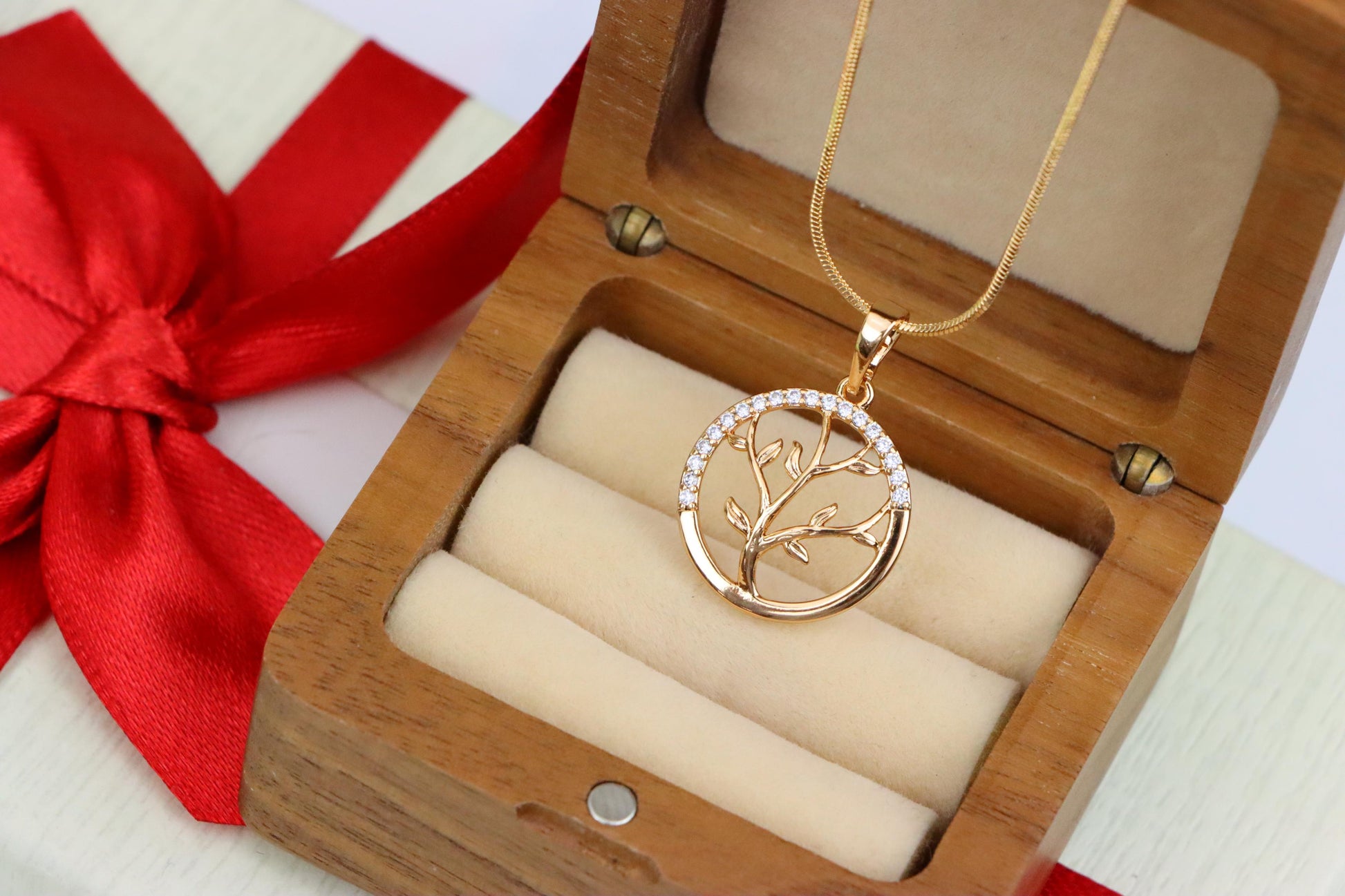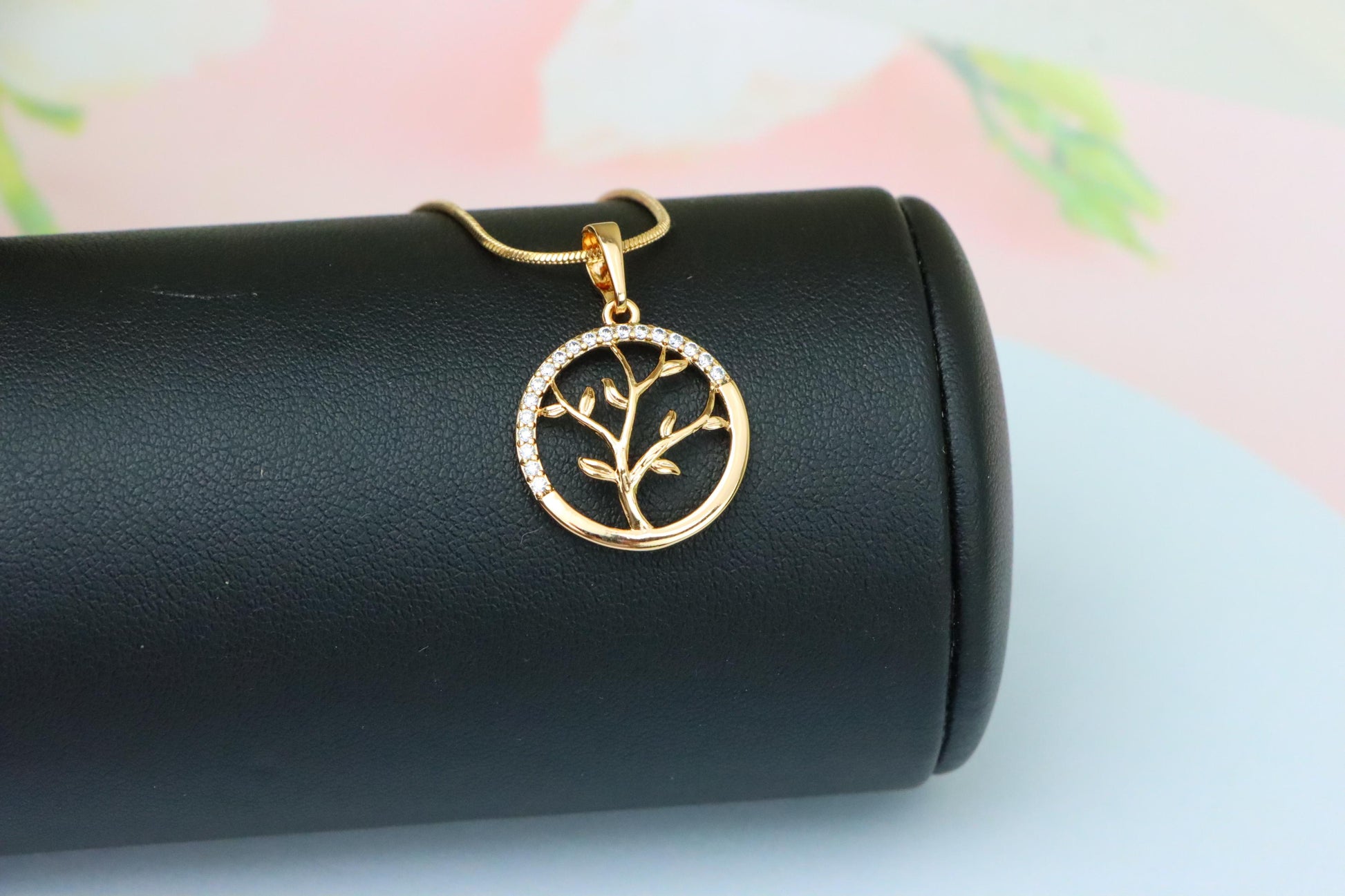 Stylish circular pendant featuring a tree of life motif and sparkling cubic zirconia accents.