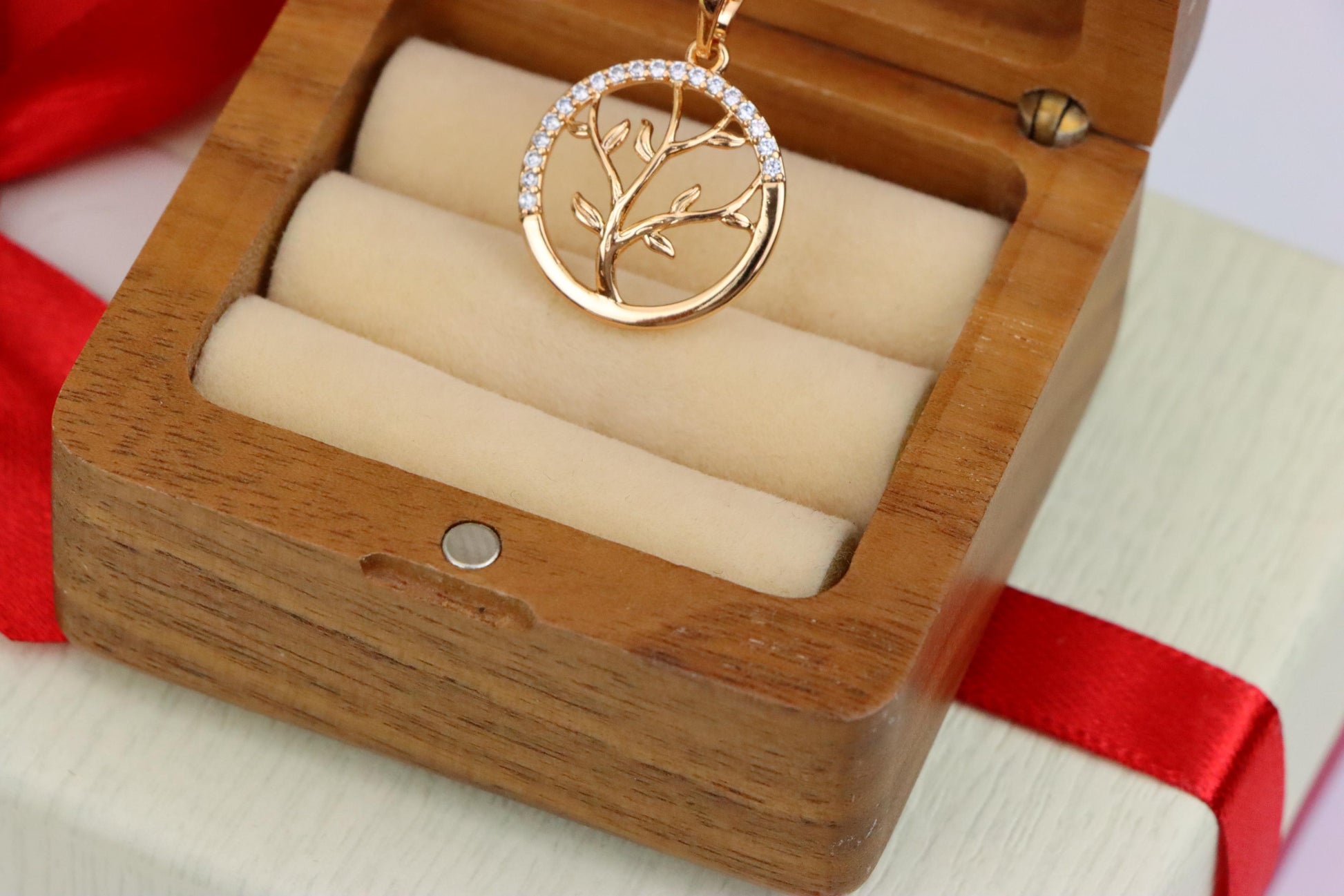 Tree of Life Rose Gold Pendant with CZ Accents in Circular Frame, XPPT1553