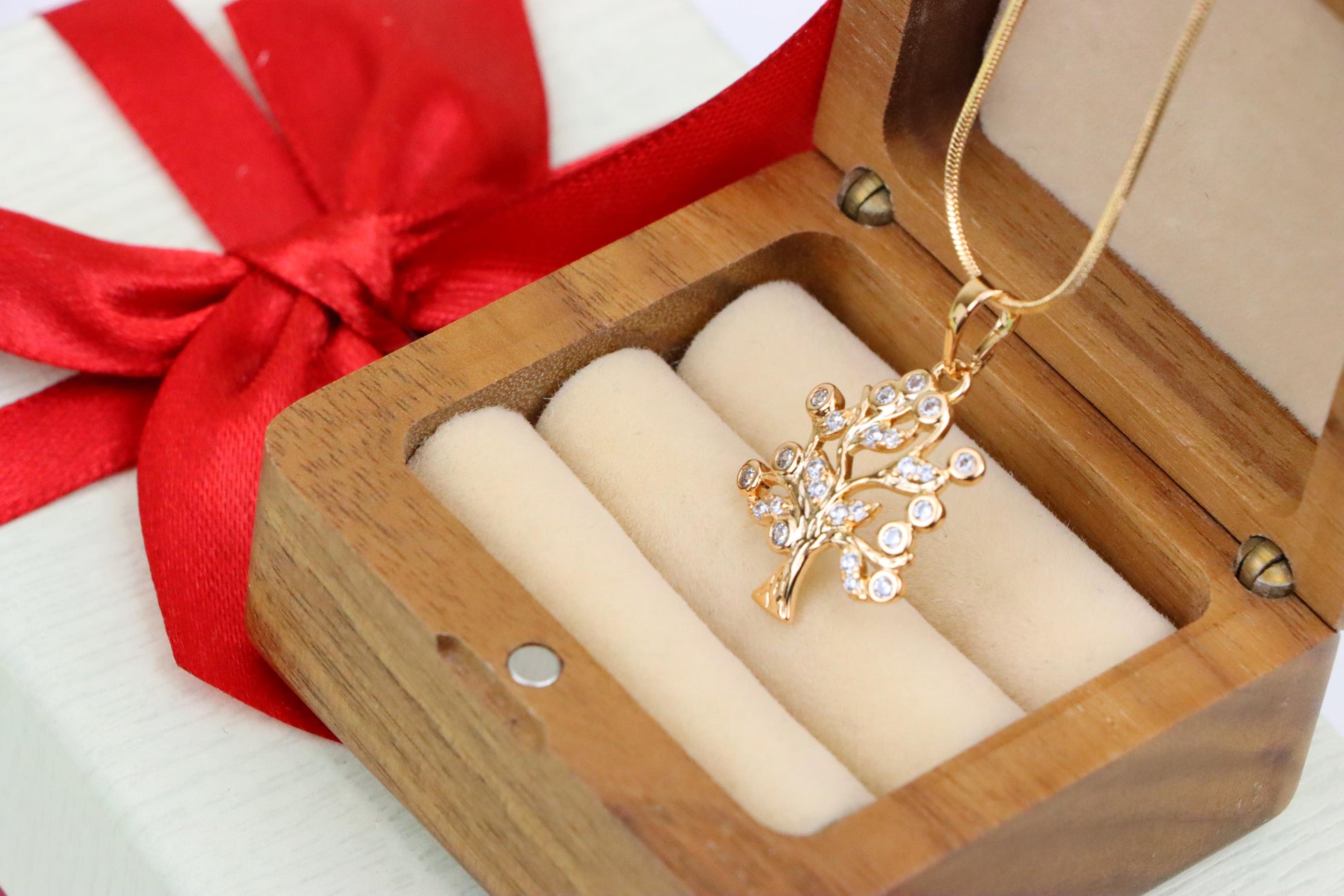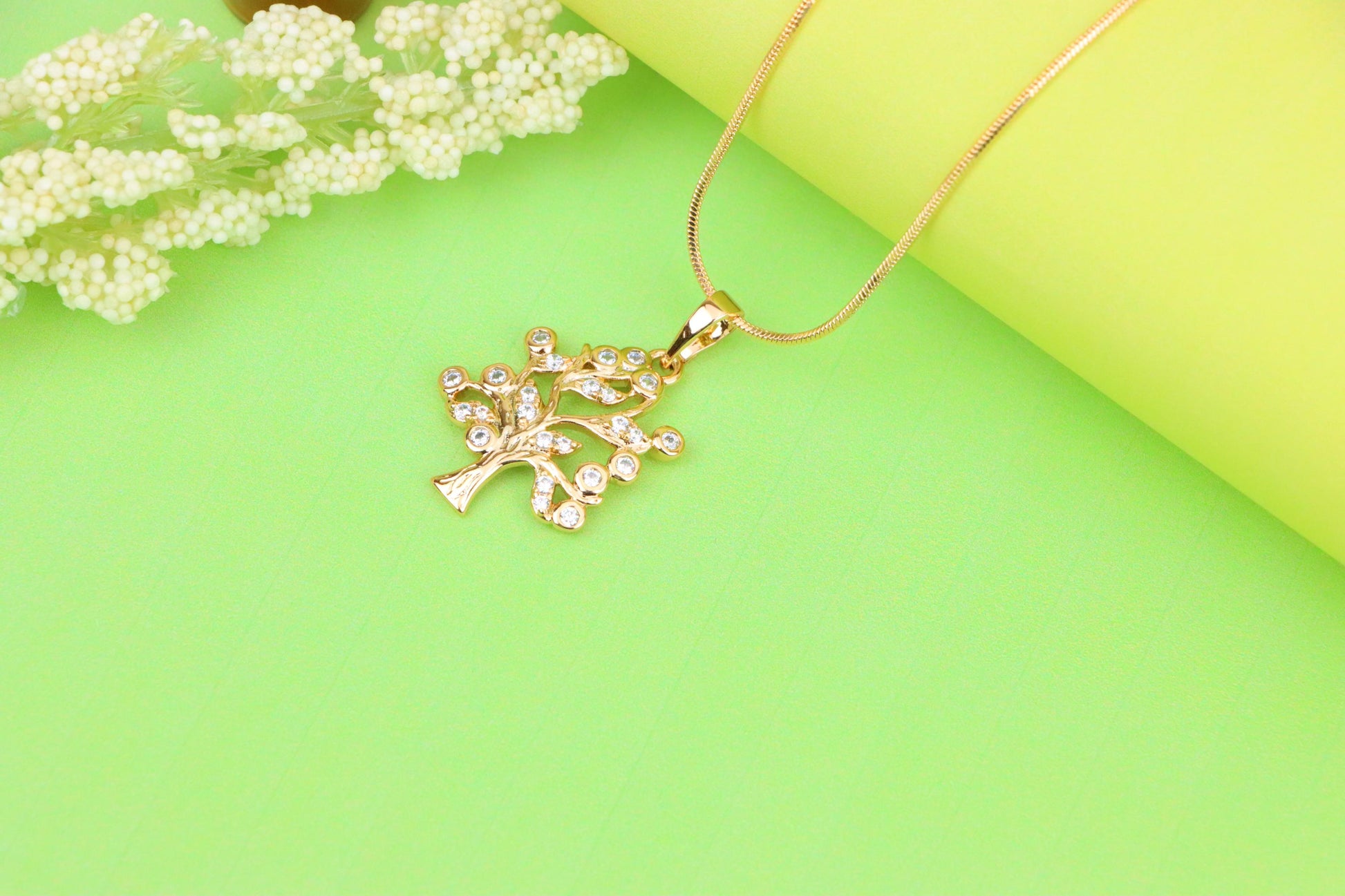 Elegant tree-shaped pendant symbolizing growth and strength, adorned with shimmering stones.