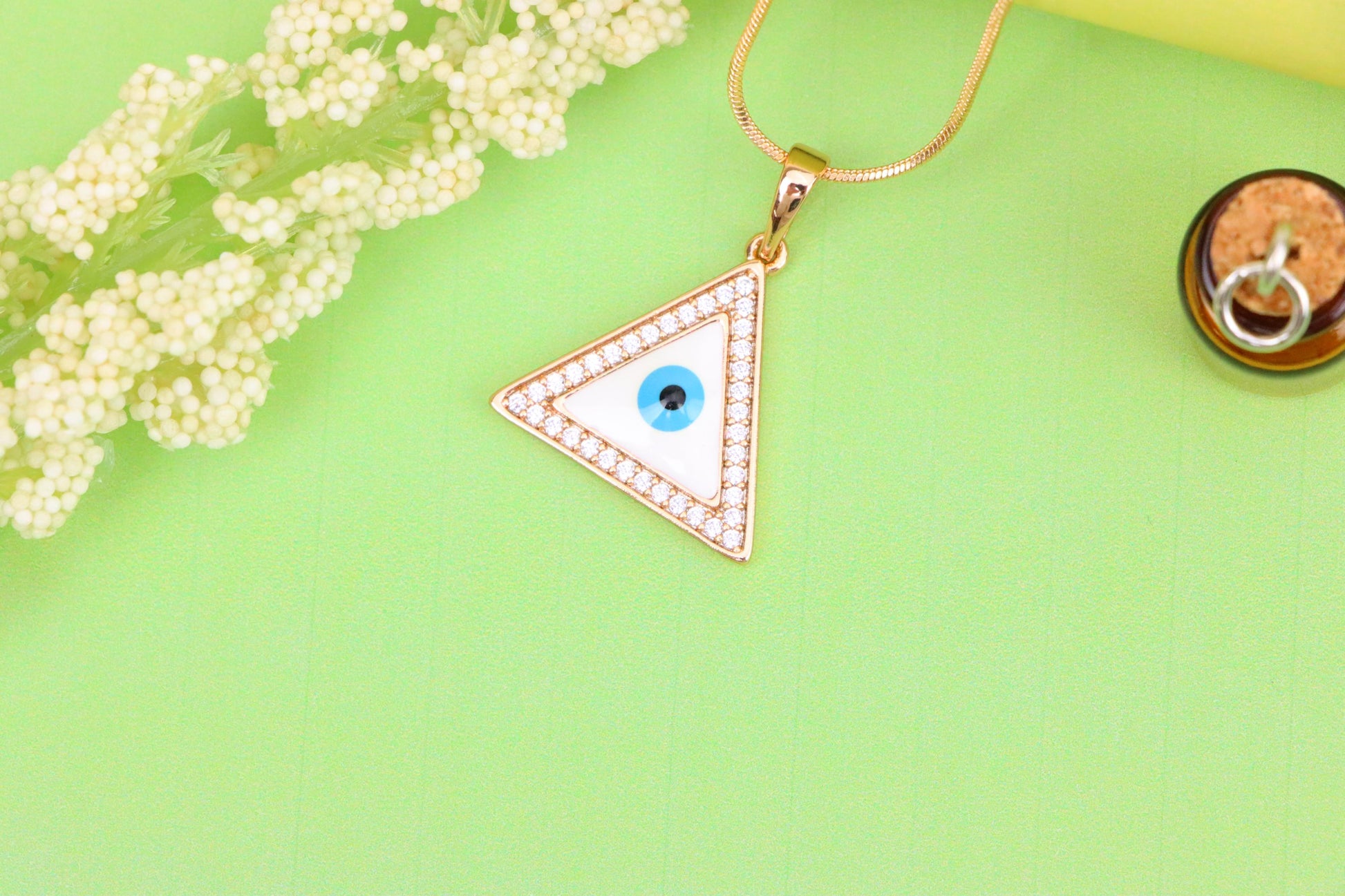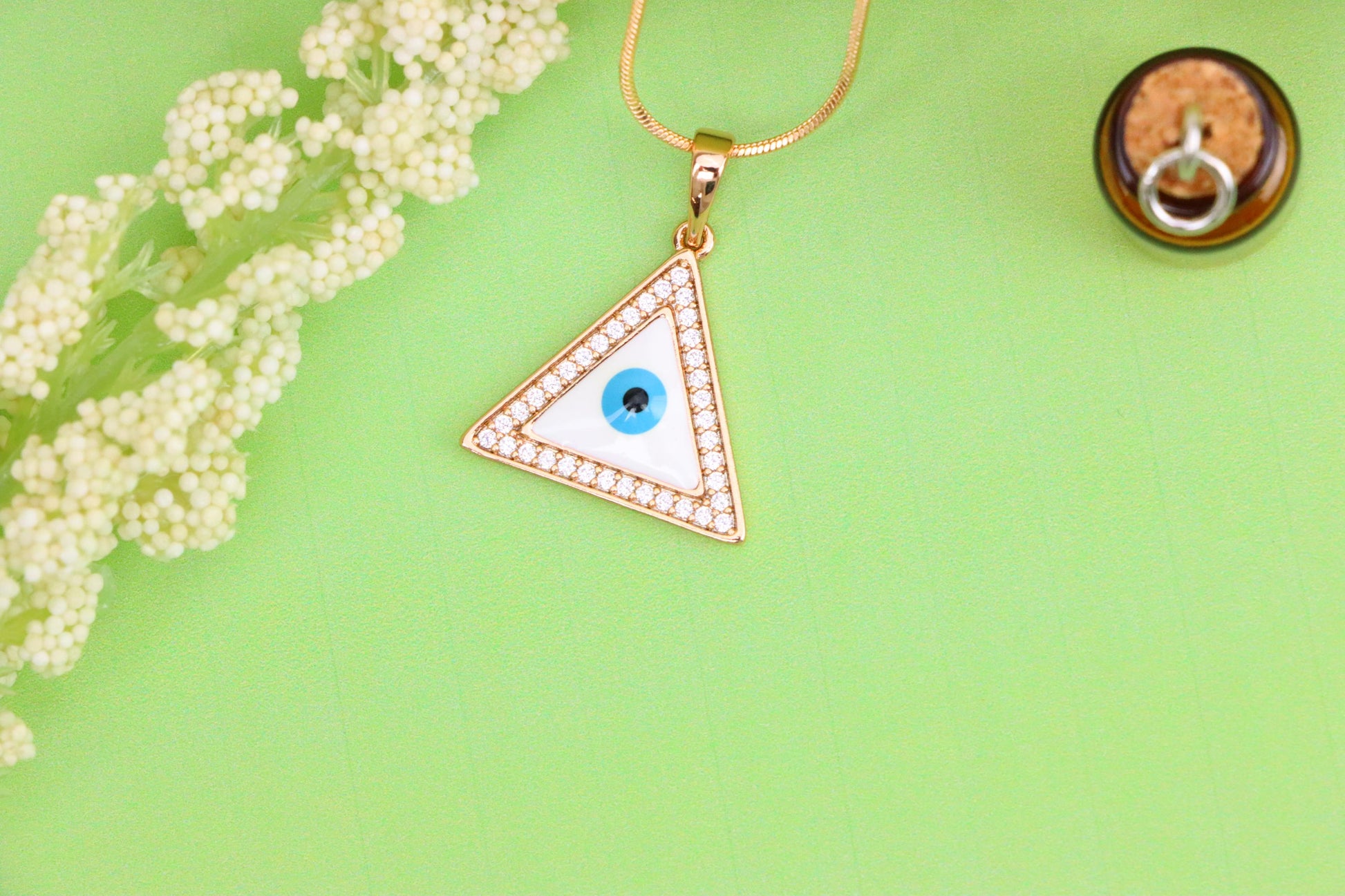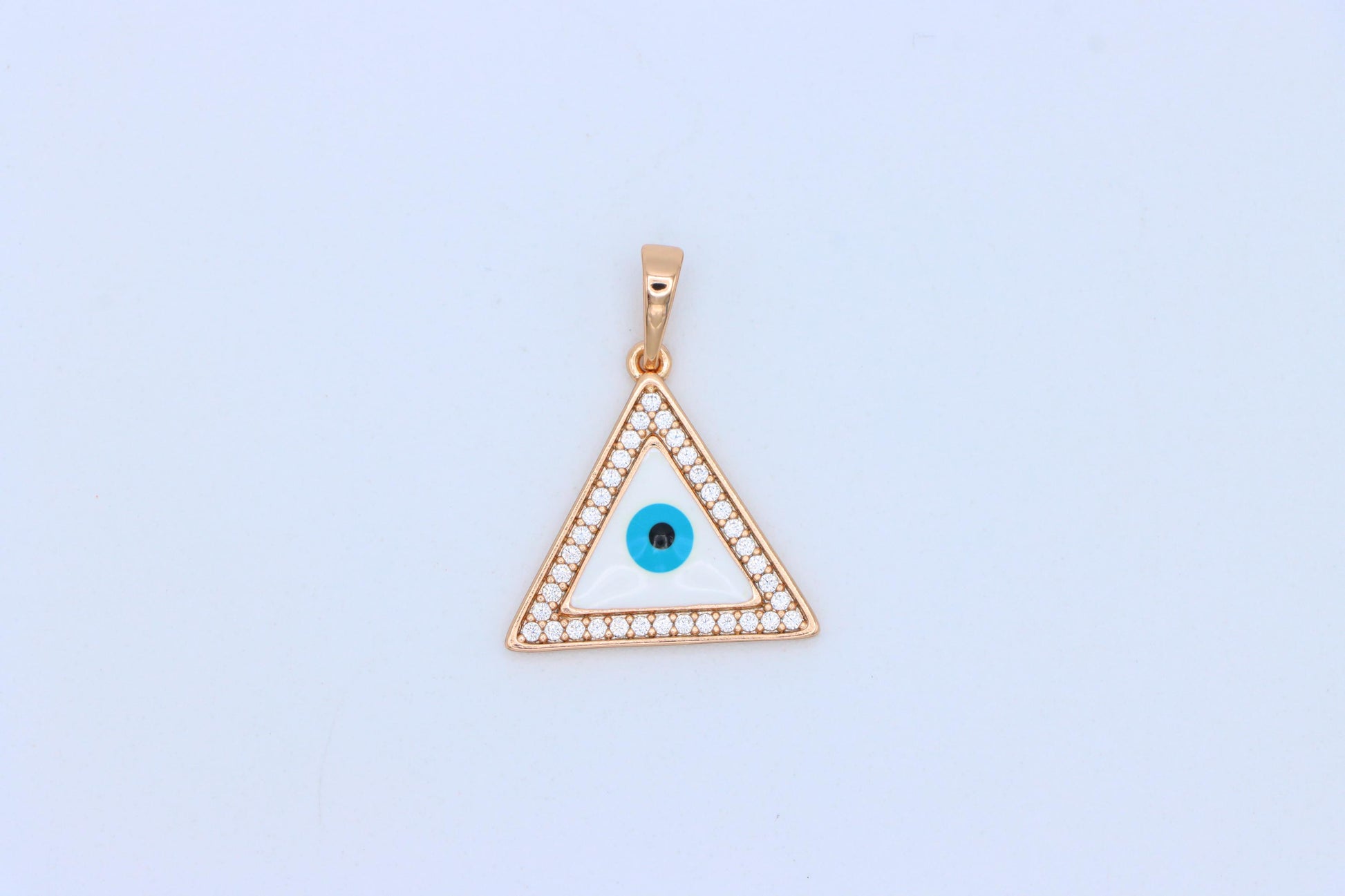 A symbolic evil eye charm in a striking triangle design for bold style.