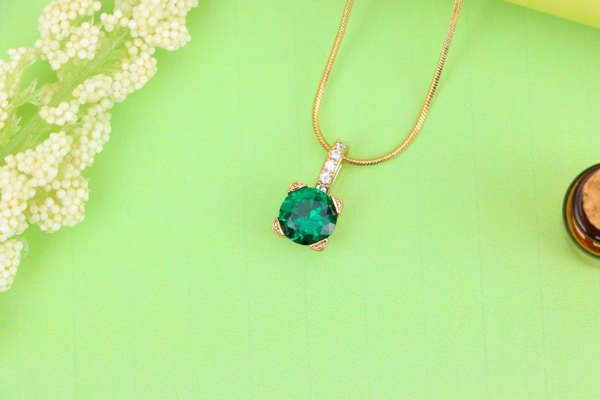 Vibrant Green Round Pendant with Stone-Studded Gold Plated Bail, XPPT1716