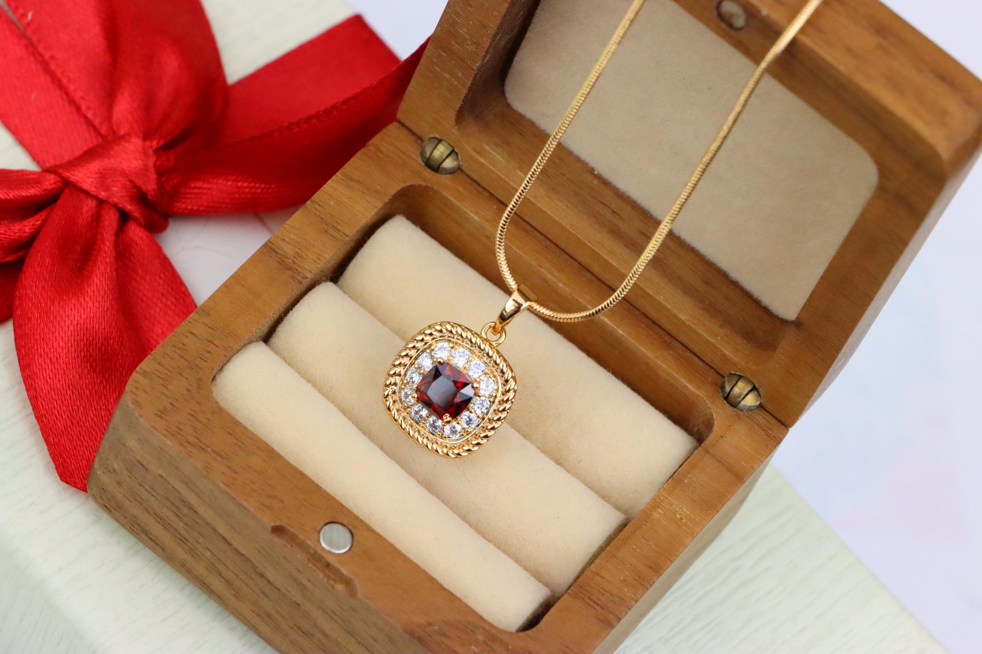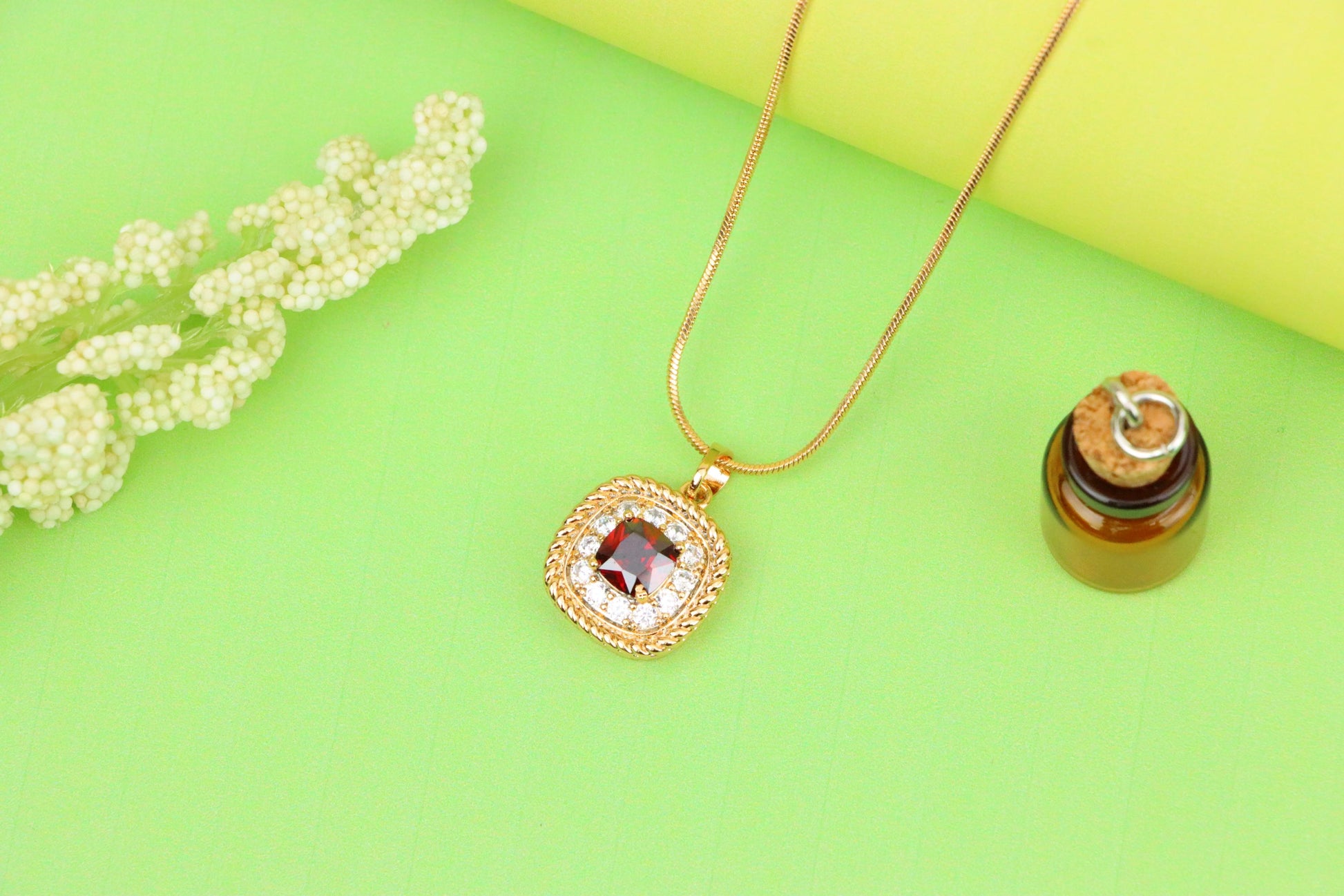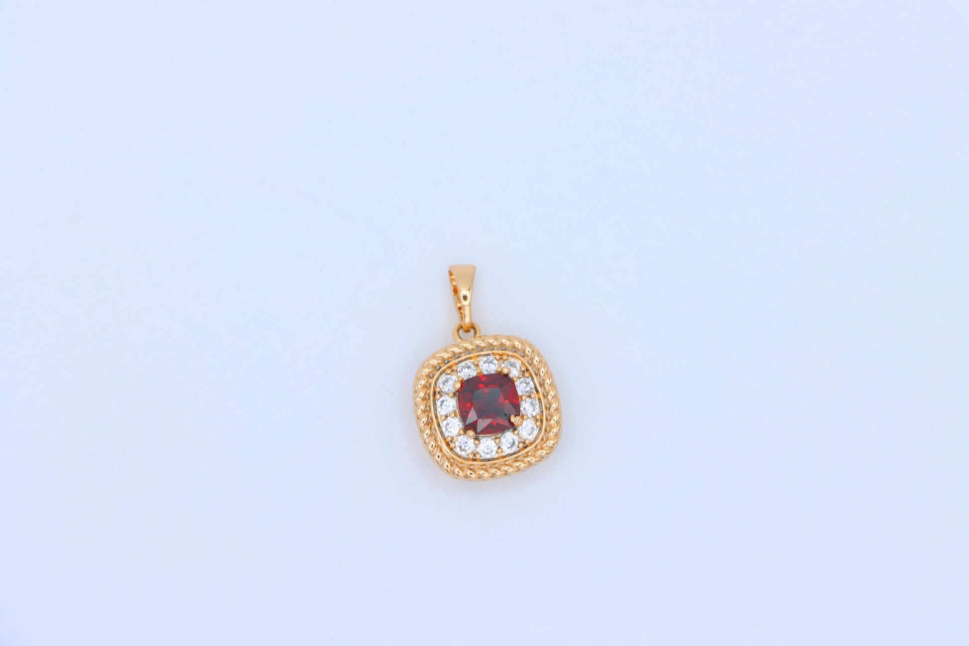 Vintage Style Red Cushion Pendant with Crystal Halo Accents, XPPT1663