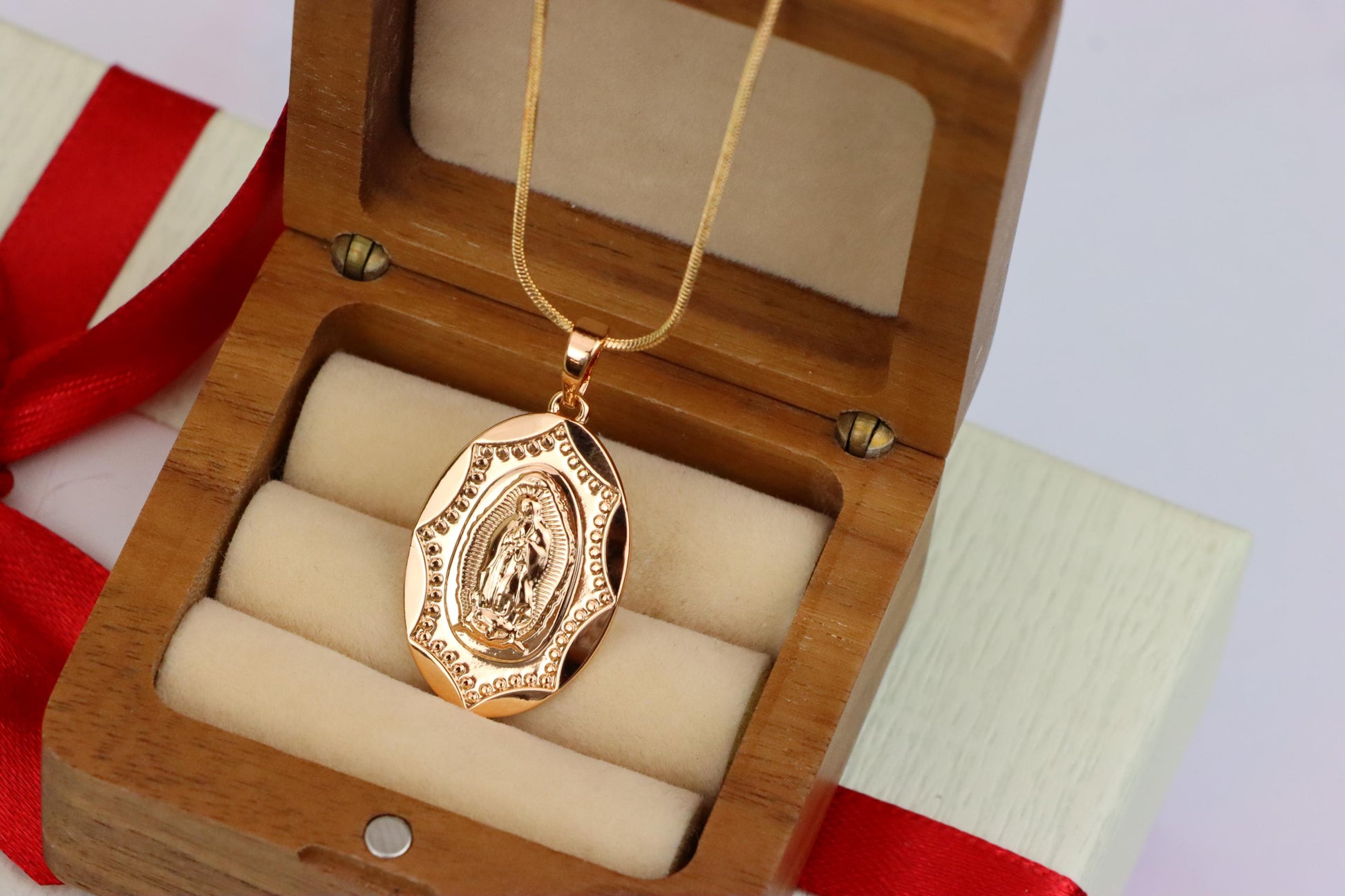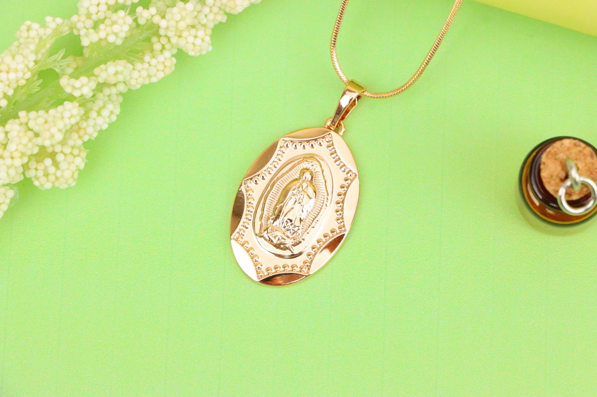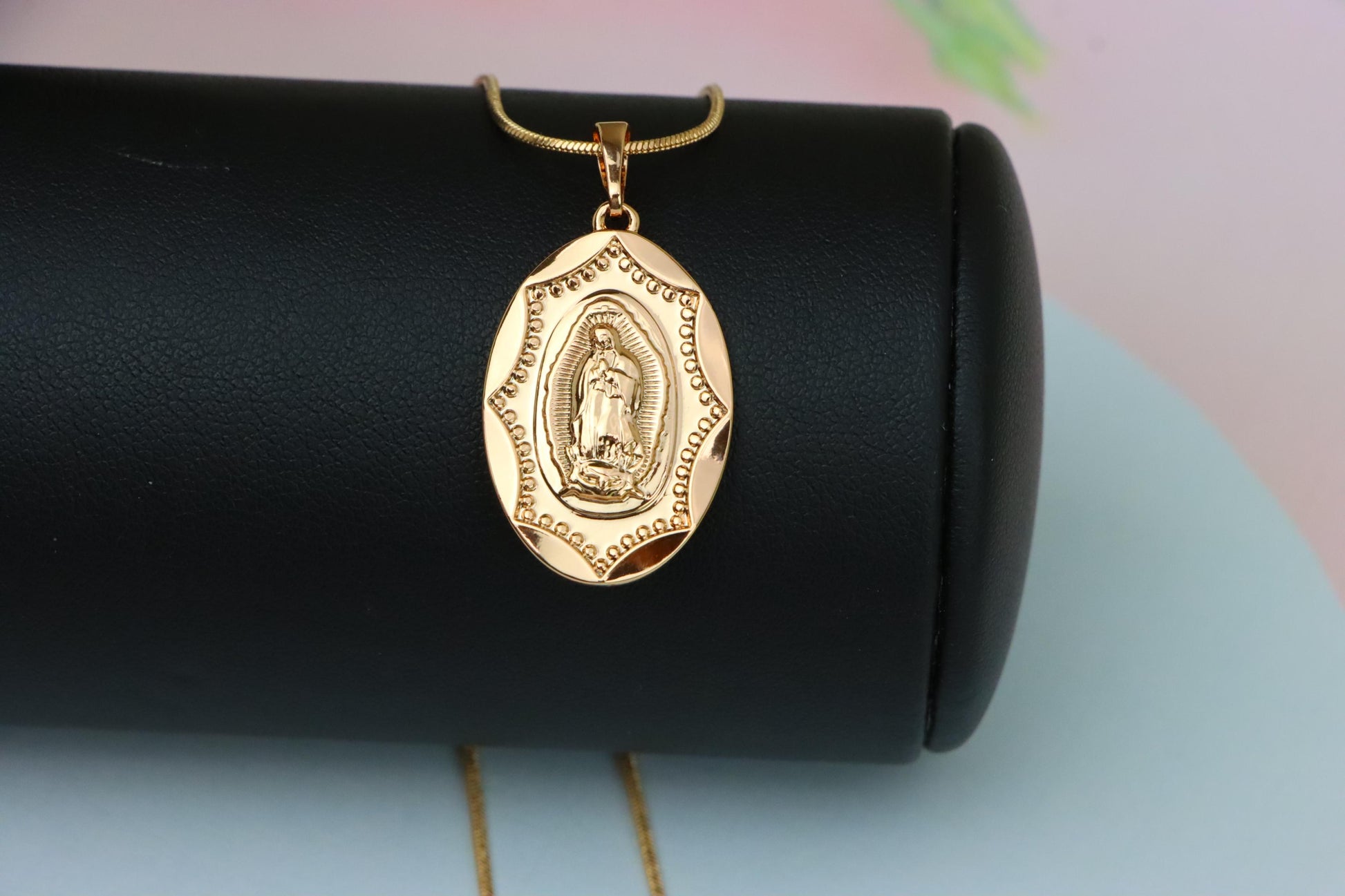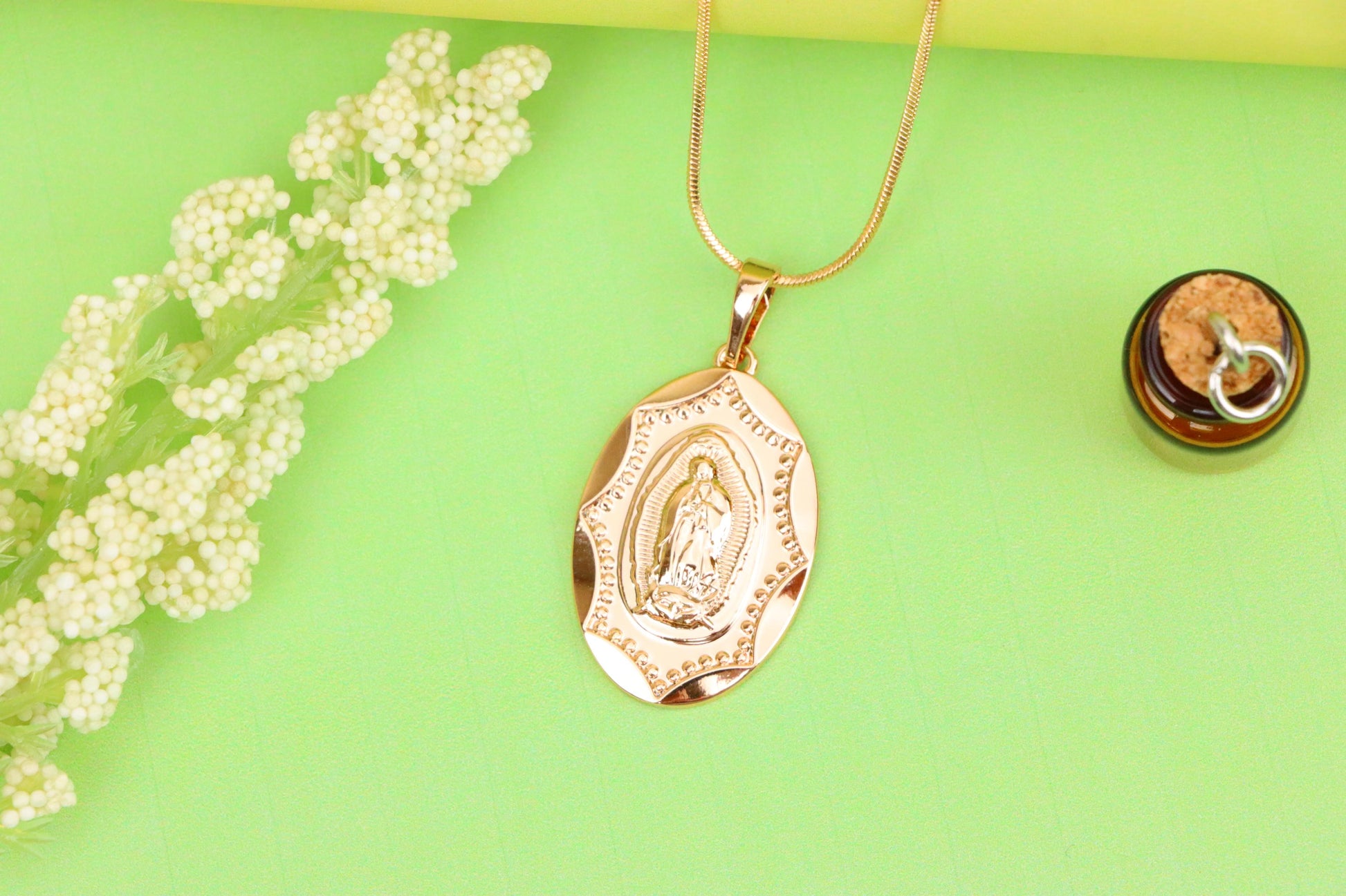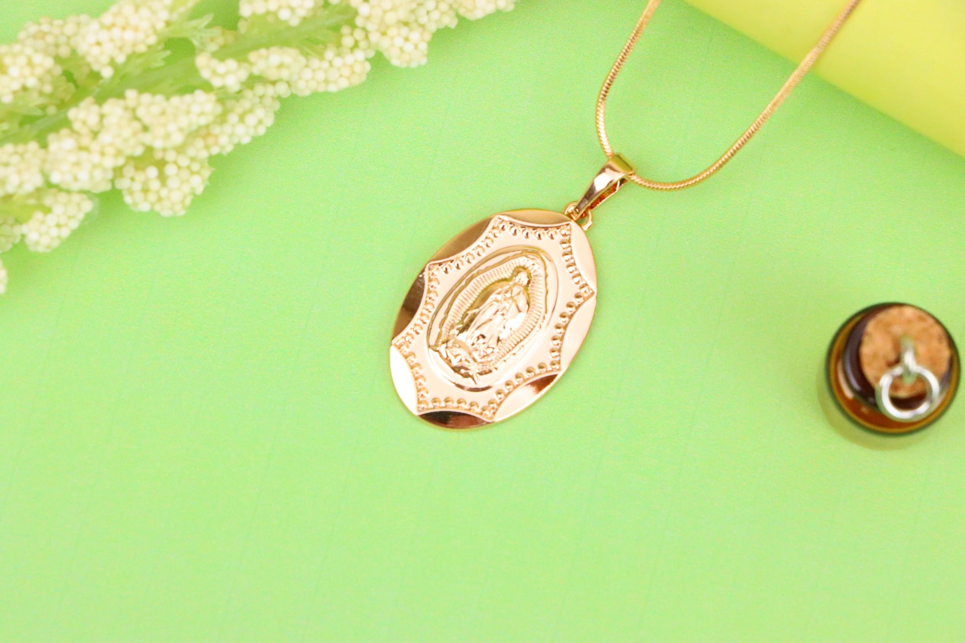 This beautifully crafted pendant features an intricate Virgin Mary design in an elegant oval shape, perfect for expressing faith with timeless style.