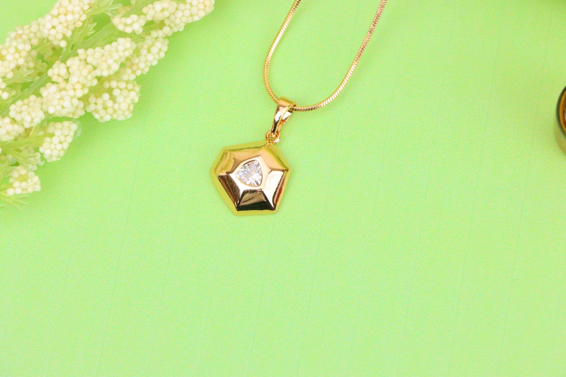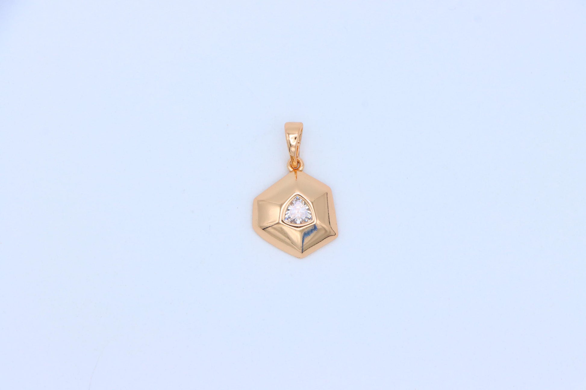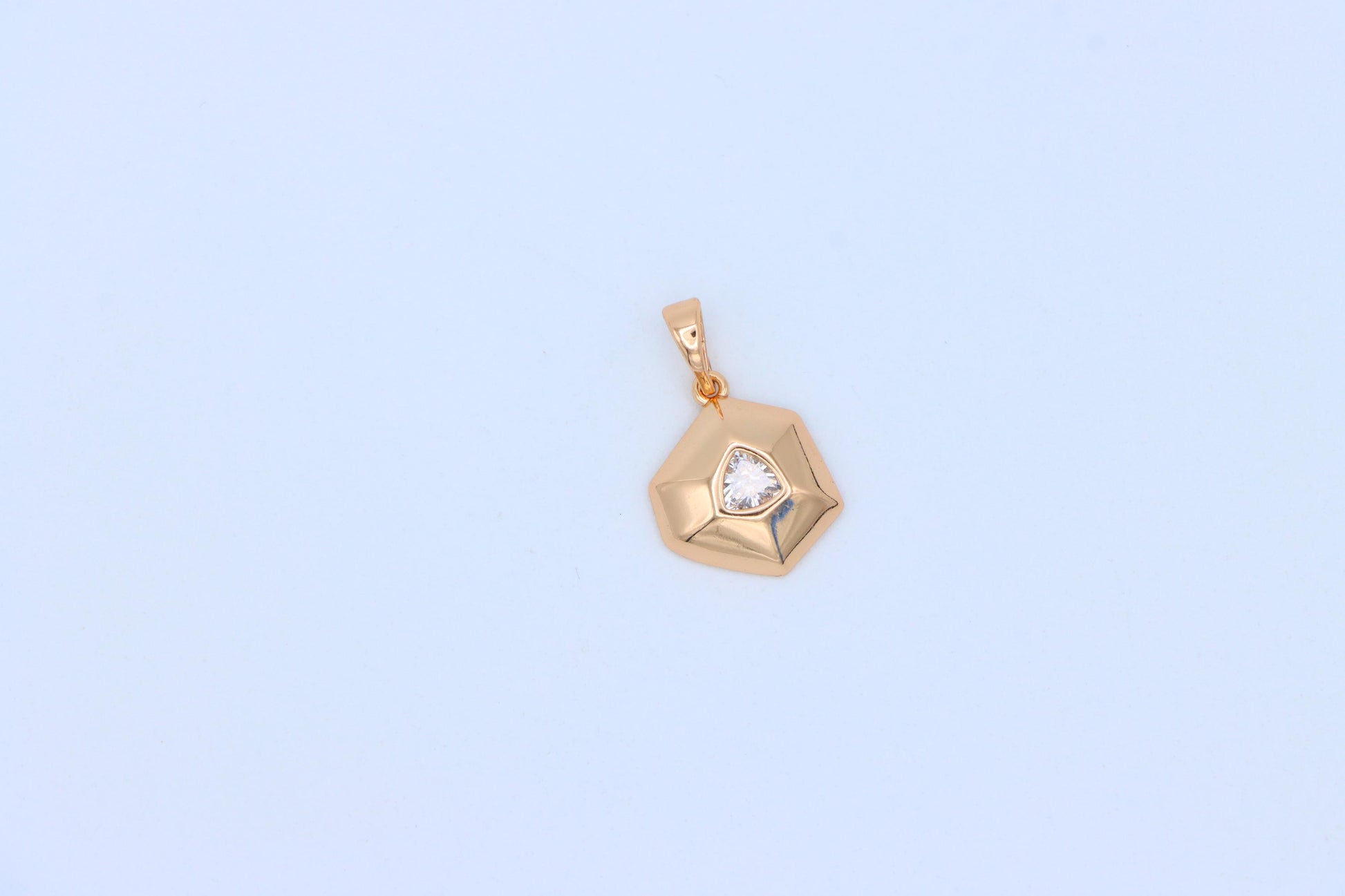 Elegant white pendant with a contemporary geometric form and dazzling center stone. Crafted in gold-plated high-quality brass for a modern, polished look.