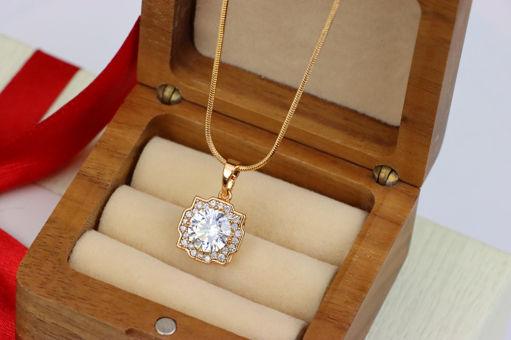 ✔️ Dazzling white round-cut centerpiece with halo accents