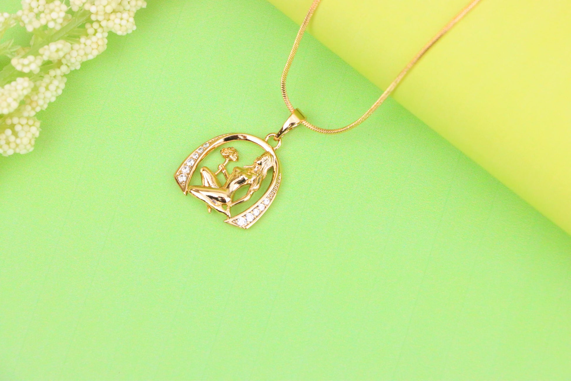 Charming zodiac-style pendant featuring a graceful woman with a flower.