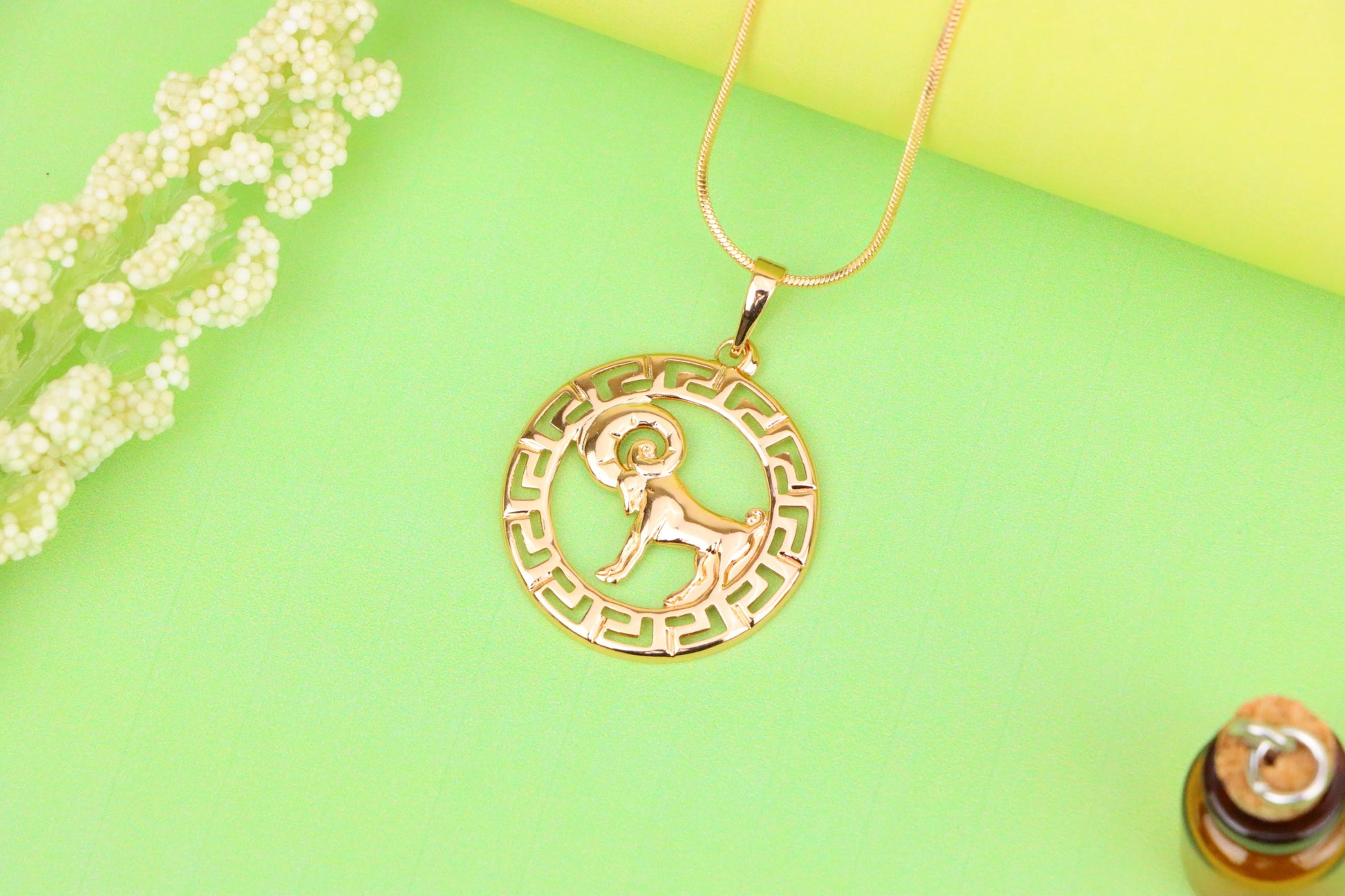 ✔️ Unique zodiac-inspired ram design with circular geometric frame